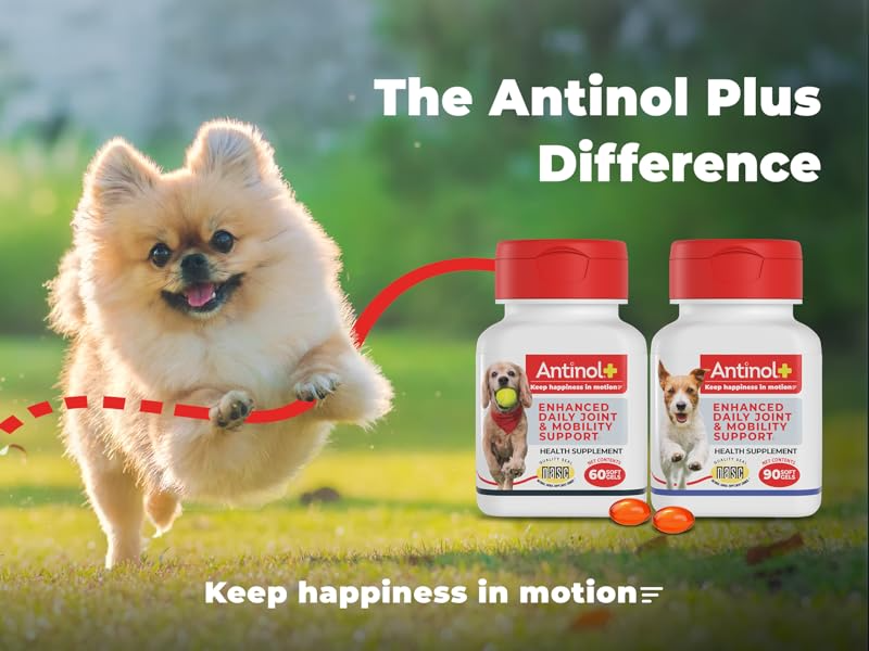 Antinol Plus is a clinically proven joint & mobility support supplement that benefits both older and younger dogs by supporting their legs, knees, and hips due to aging or overuse.